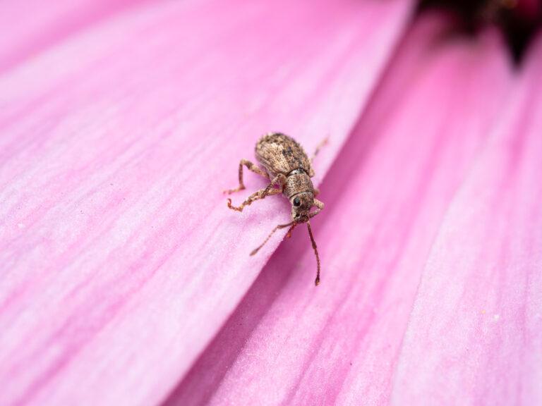 This small insect is a peach root weevil, a member of the root weevils, as its name suggests. A non-native nuisance species from Asia, according