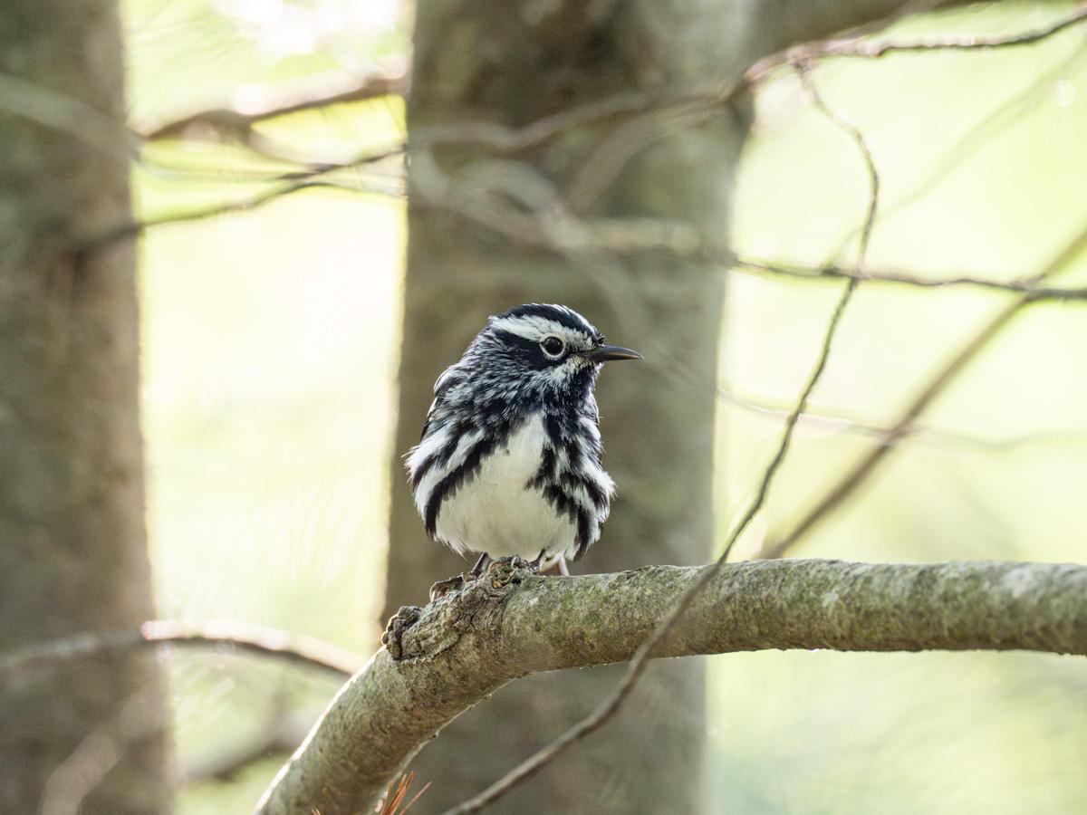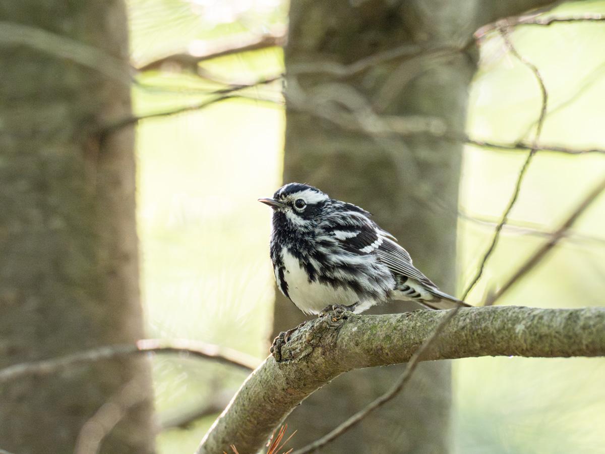 Imagine my surprise when I turned around, honing in on the singing, to find a black and white warbler sitting on a pine branch, at eye level and well within range of my lens!  He mostly ignored me as he continued to sing, and I had a solid couple of minutes of time with him before he paused and relocated higher in the tree.