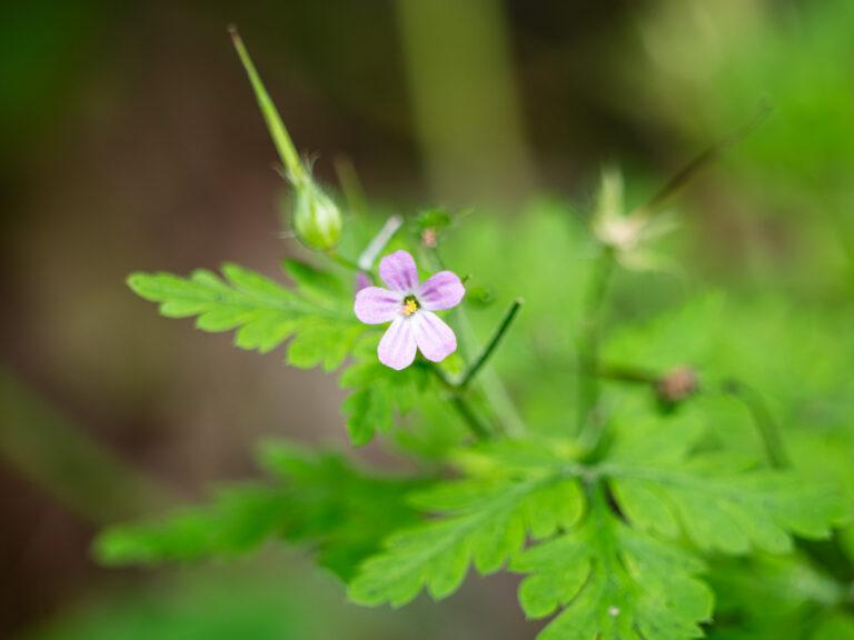 A sampling of summer wildflowers: herb Roberts, Philadelipha fleabane, and maiden pink blossoms.