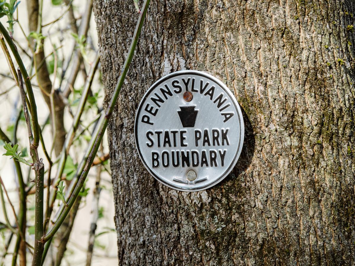 I like the PA State Park Boundary signs, their design and style, their simplicity of form and message.  This is a boundary.  A statement of fact.  At this point, one thing ends and another begins.   I wish more of life was so clearly, so simply delineated, and I have to imagine I’m not alone in that wish.